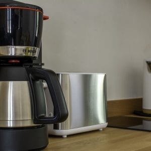 Fully equipped with modern appliances, including a washing machine, ensuring a convenient stay